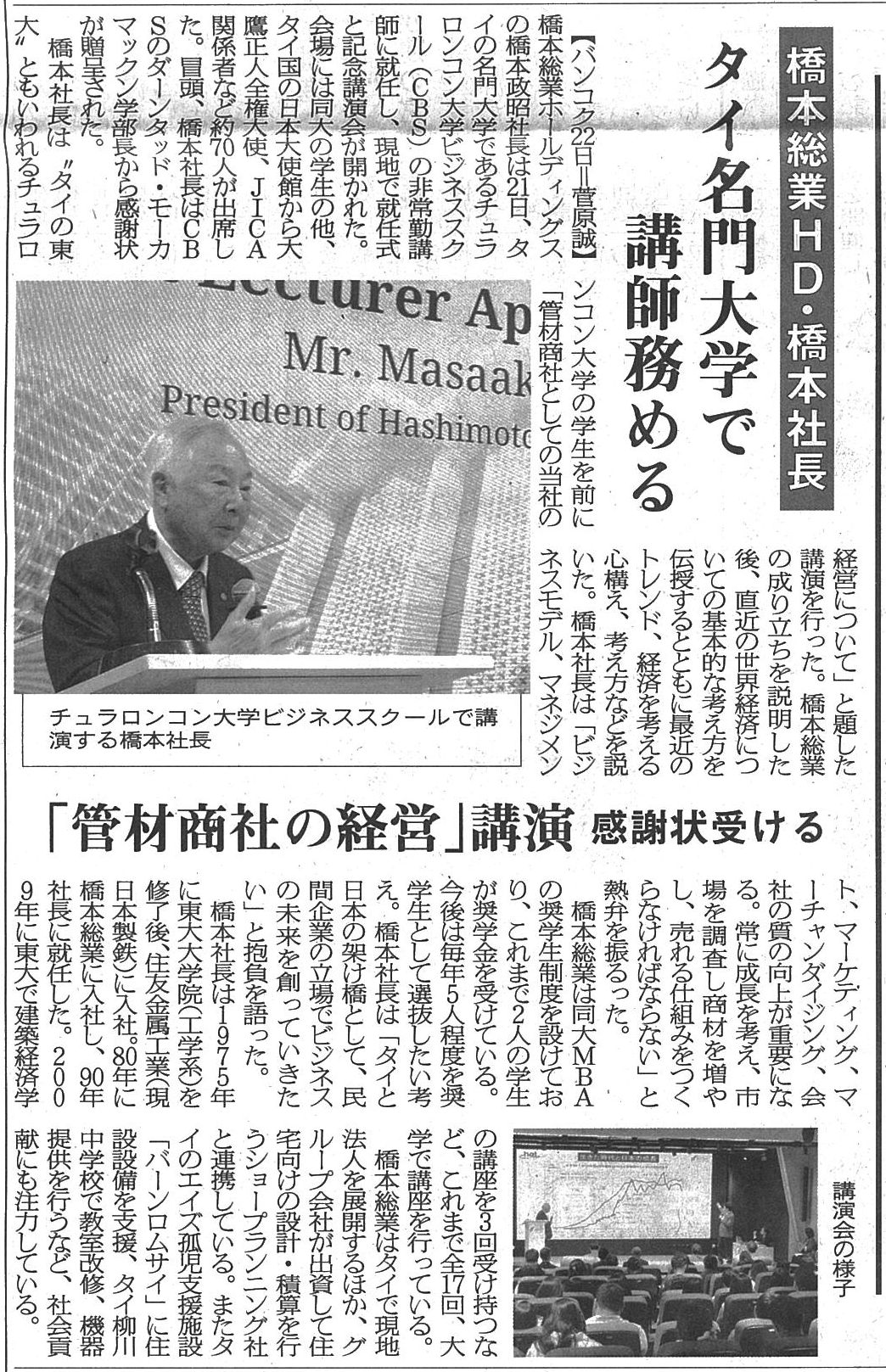 橋本総業HD・橋本社長 タイ名門大学で講師務める