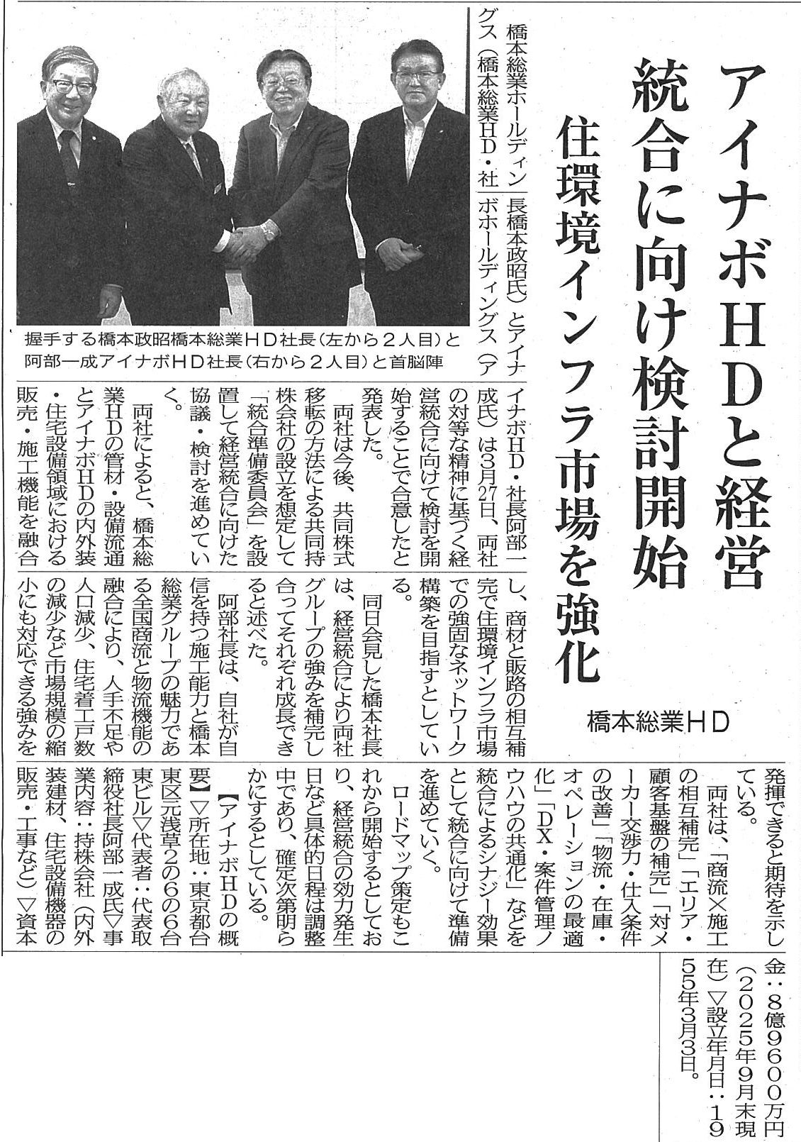 アイナボHDと経営統合の向け検討開始 住環境インフラ市場を強化